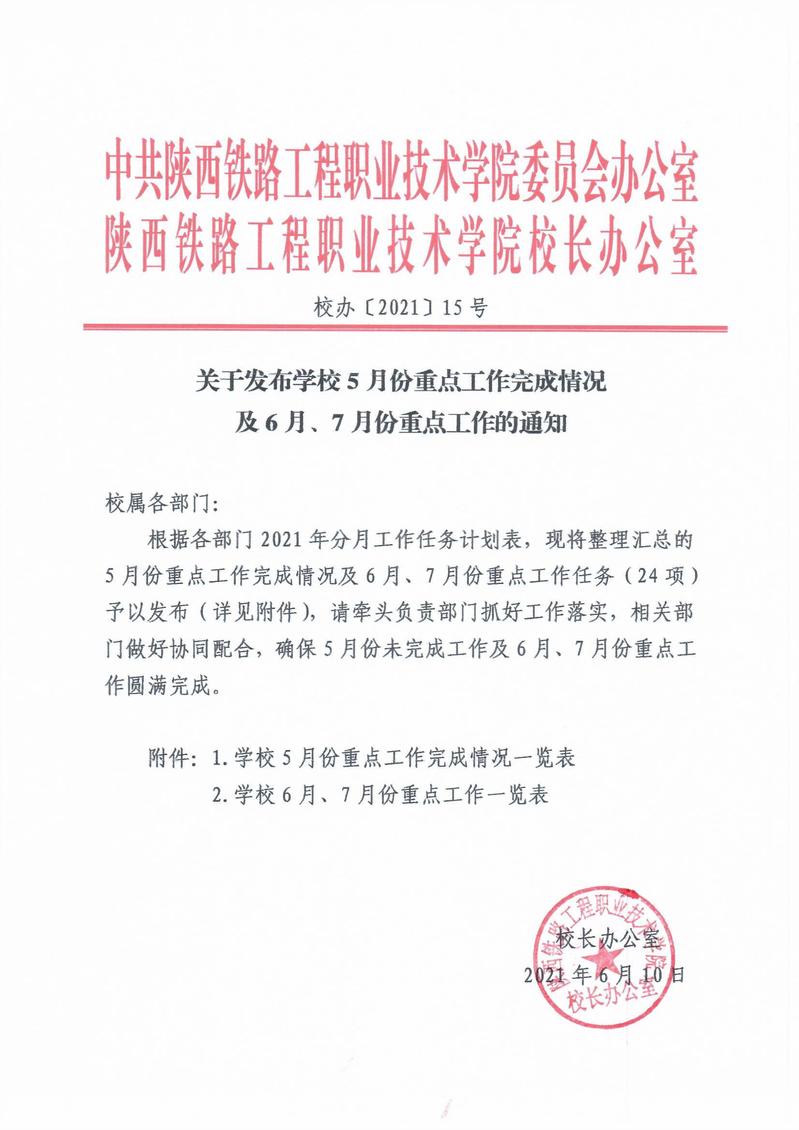 关于发布学校5月份重点工作完成情况及6月、7月份重点工作的通知