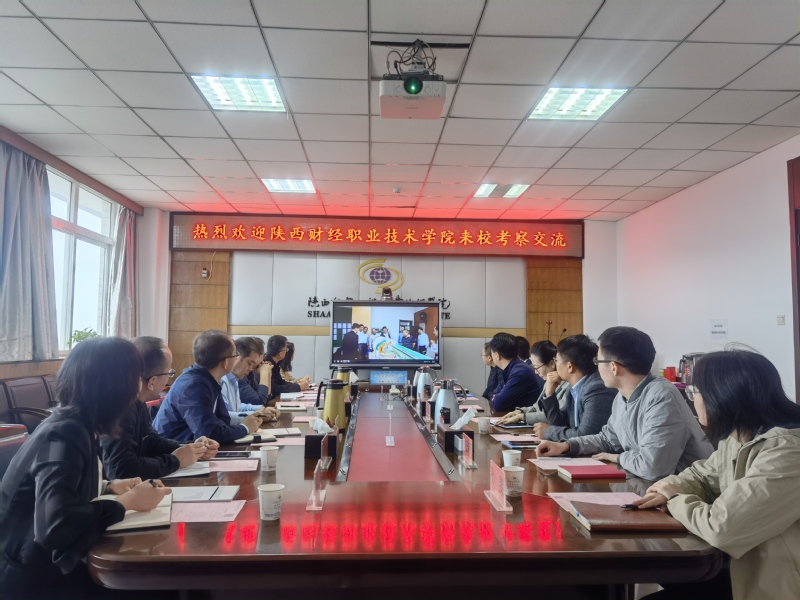 双方在临渭校区11楼会议室观看学校宣传片。王津书记对来访人员表示热烈欢迎并介绍了我校办学发展、新校区建设、“双高”建设、人事管理等方面工作的开展情况,希望双方加强交流,互促发展。程书强校长对我校热情接待表示感谢,对学校多年来取得的办学成绩表示赞赏,并介绍了陕财职院专业建设、校企合作、人才培养、师资力量、招生录取等基本情况。