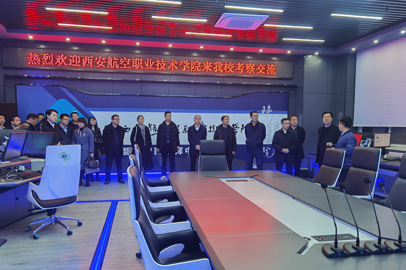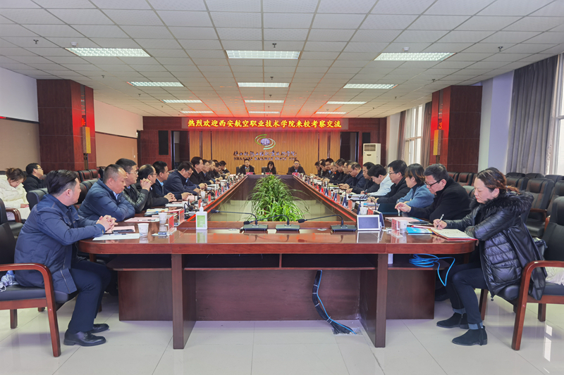 12月5日下午,西安航空职业技术学院党委书记周岩,校长张敏华,党委副书记王宏斌,副校长郭红星、侯晓方一行19人来校考察交流。