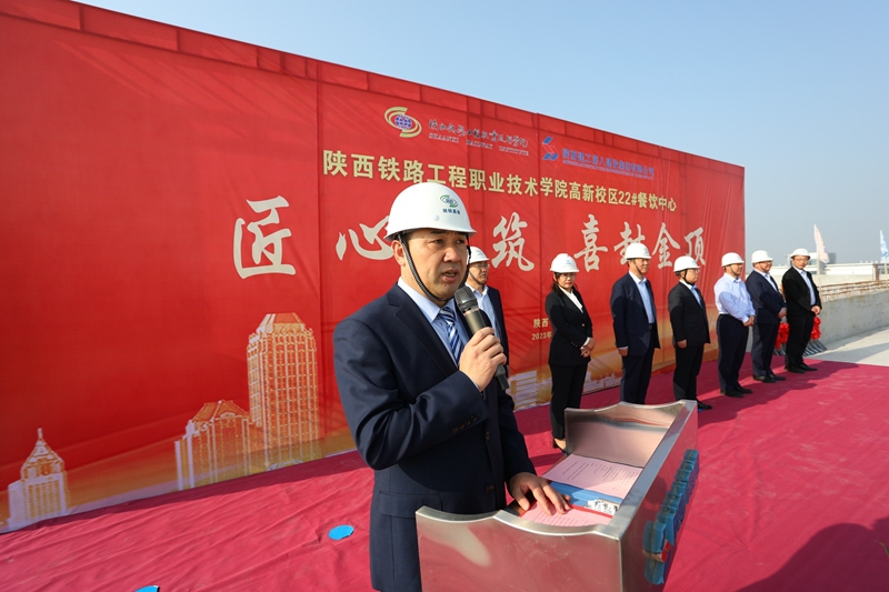 4月19日上午,学校高新校区22#餐饮中心封顶仪式举行。学校党委书记焦胜军,党委副书记李林军,党委副书记、纪委书记黎炜,副校长张学钢、贺建锋、祝和意,陕八建集团副总经理王勋、华夏城投监理总经理钟丽出席仪式,基建领导小组、指挥部、基建处、各参建单位代表参加仪式。仪式由副校长贺建锋主持。