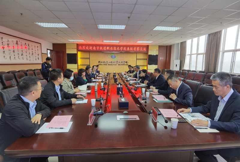 会上,双方人员共同观看了陕铁院宣传片,来宾对学校发展历程、办学特色、专业设置、新校区建设、校园文化等情况作了进一步了解。焦胜军对贺兴初书记一行的到来表示诚挚的欢迎,焦胜军从学校“双高”建设布局、校企合作、科研转化、招生就业、新校区建设、国际合作等方面进行了详细介绍。贺兴初书记从南京铁道职业技术学院办学历程、双高”建设等办学情况进行了介绍。随后,双方围绕新校区建设、“双高”建设,实训基地建设等方面进行了深入交流。