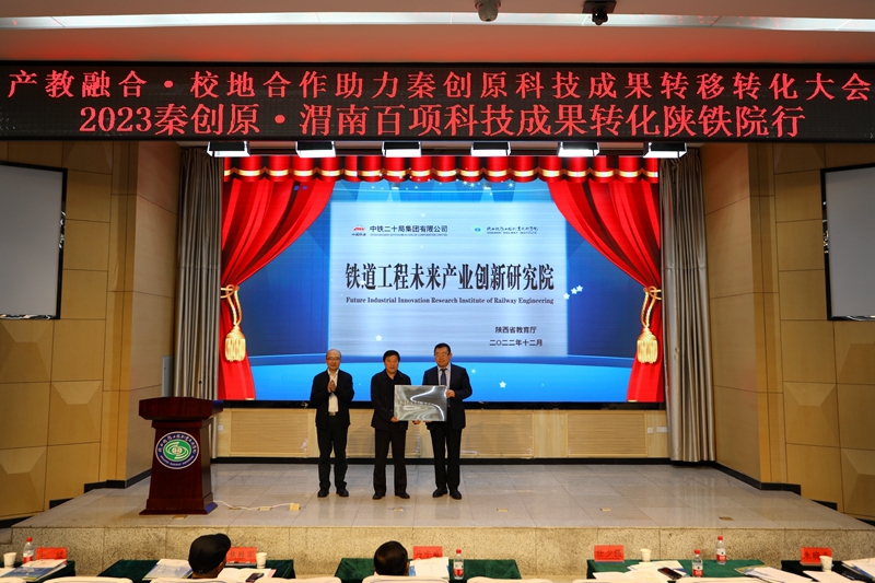 学校联合中铁二十局集团有限公司申报的“铁道工程未来产业创新研究院”,成功获批陕西省教育厅未来产业创新研究院,朱晓冬为企校进行了授牌,任少强和学校副校长张学钢代表企校上台接牌。陕西安长再创科技有限公司、陕西美光三维科技有限公司、麦塔沃斯(陕西)科技有限公司3位企业代表分别发布了企业需求。会议还发布了学校与渭南产业发展相关的4项成果,其中包括《基于BIM的智慧建造技术研究及应用》《高速铁路隧道二次衬砌注浆结合料制备与工程应用成套技术》《特种耐蚀管材产业化关键技术》以及学校精品培训项目。