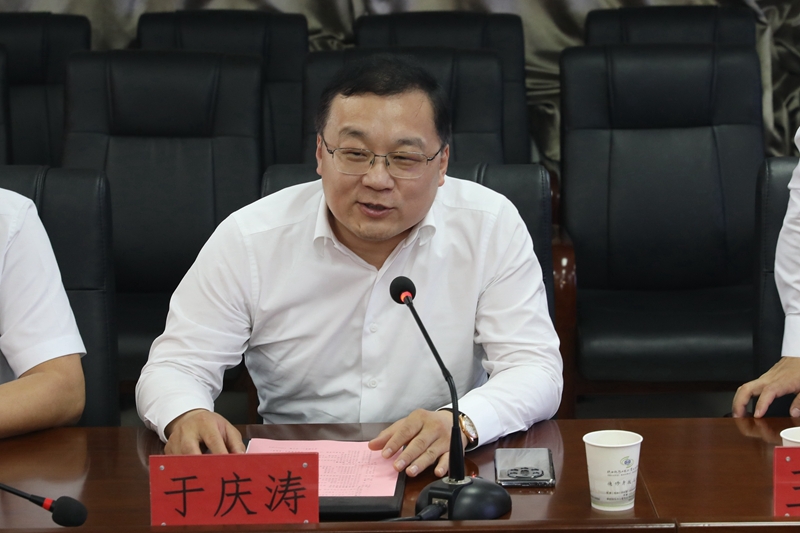 于庆涛回顾了在校求学历程,言语中无不体现心系母校,热爱母校的赤子之心,同时对学校办学特色、校企合作成效给予高度评价,介绍了公司发展情况、取得的荣誉及校企合作需求,并表示双方具有扎实的合作基础,希望双方精诚合作、优势互补、不断拓展合作领域、提升合作层次,实现共赢发展。