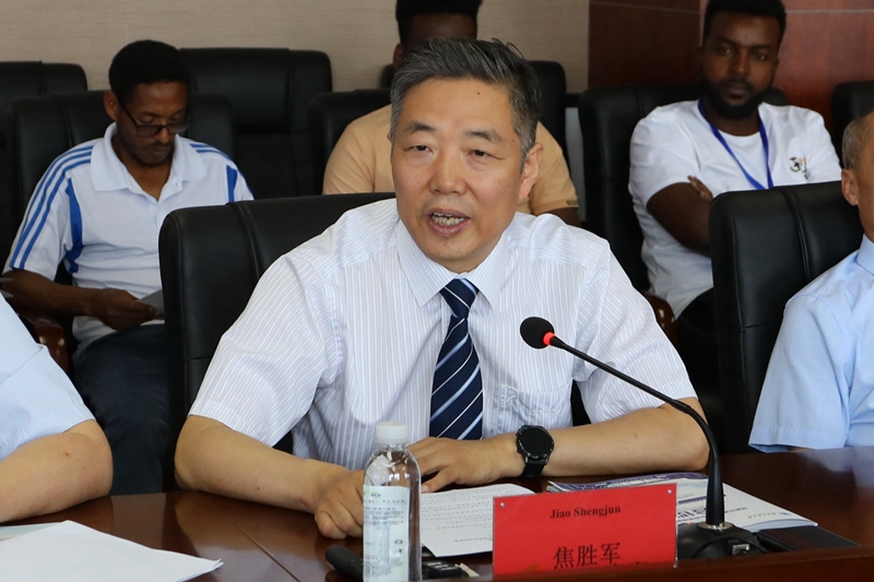 焦胜军代表学校热烈欢迎西南交通大学和研修班各位官员的到来。他在致辞中向客人介绍了学校概况,重点介绍了学校“开拓视野、引领发展、合作共赢、提升能力”的总体思路,实施“北联·南输·西融·东拓”战略,构建“盟·院·坊·圈”国际化办学格局,推动学校国际合作取得了优异的成绩。焦胜军希望以本次交流为契机,搭建好沟通交流、增进友谊的平台,主动承担传播中国铁路技术使命,提升学校国际化办学水平,助力世界铁路职业教育发展。
