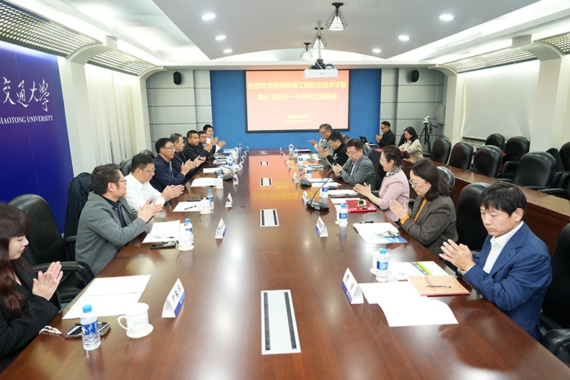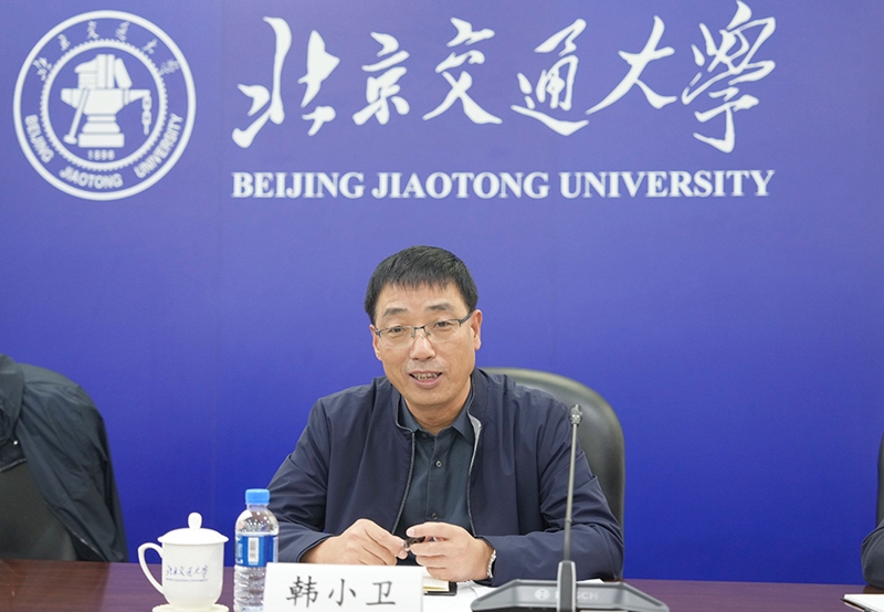 韩小卫对北京交通大学长期以来对陕铁院的支持表示衷心感谢。他介绍了近年学校与北京交通大学的合作、交流,并介绍了学校概况和近年取得的标志性成果,希望未来三方充分发挥各自优势,实现资源共享、优势互补,建立产教供需对接机制,推动技术创新与人才培养的深度融合。