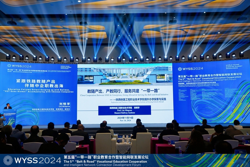 刘明学以“教随产出,产教同行,服务共建‘一带一路’”为题,围绕陕铁院的历史与发展、铁路“走出去”步伐加快、校企协同开展境外办学、成绩突出形成陕铁力量等三方面,向与会国内外政府、高校、企业代表分享了陕铁院境外办学探索与实践经验。他提到,陕铁院坚持“教随产出、产教同行”,立足学校铁路办学特色,服务国家外交大局,实施“走出去”和“引进来”双线发展,现已形成“盟、院、坊、圈”合作办学格局,不断提升国际化办学水平。学校主动肩负中国铁路标准、技术的国际传播者使命,在肯尼亚、卢旺达、孟加拉国等共建“一带一路”国家开展境外办学,建设运营鲁班工坊、秦岭工坊,探索设立海外应用技术学院,累计培养本土铁路技术技能人才2000余人。